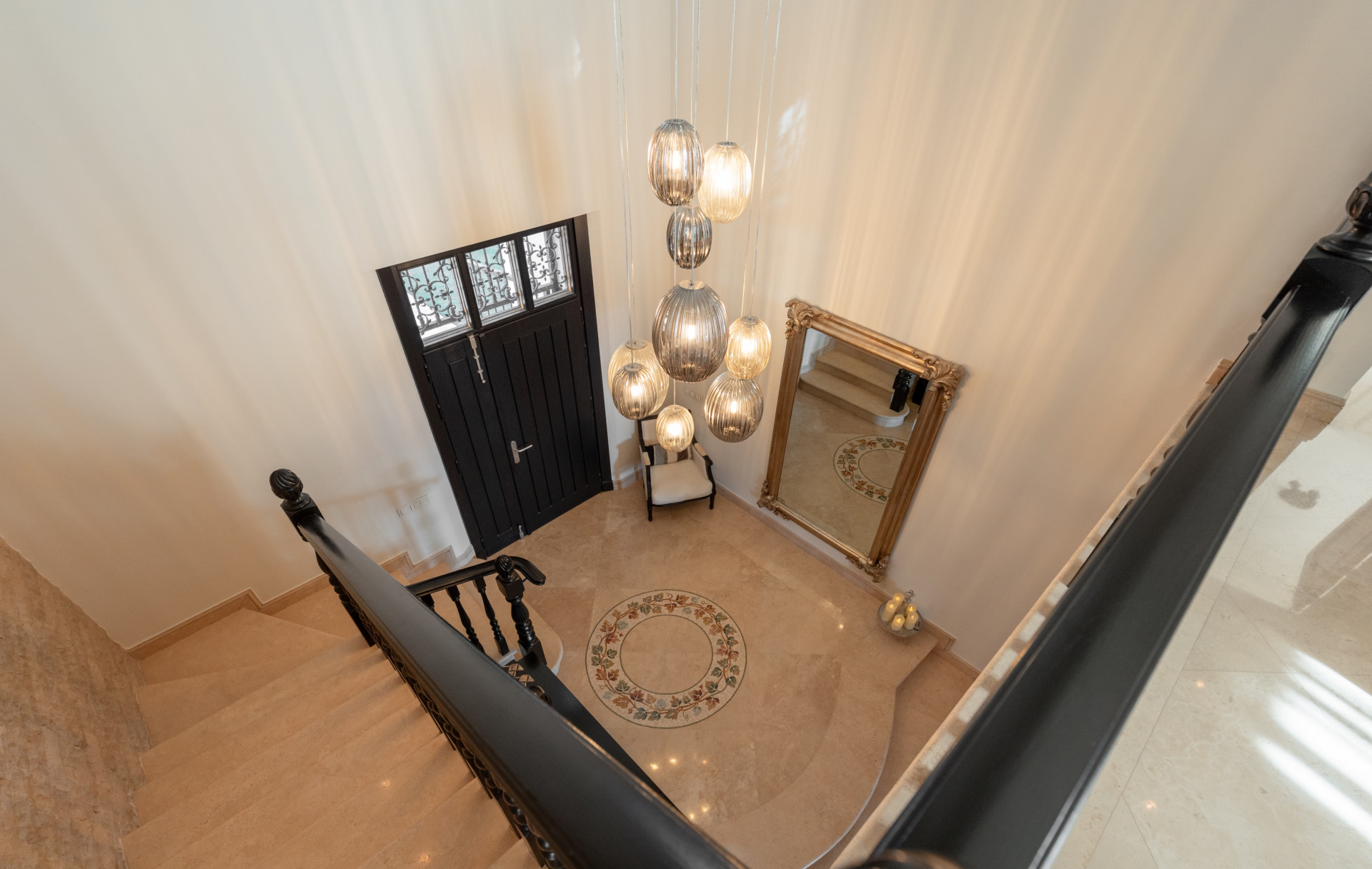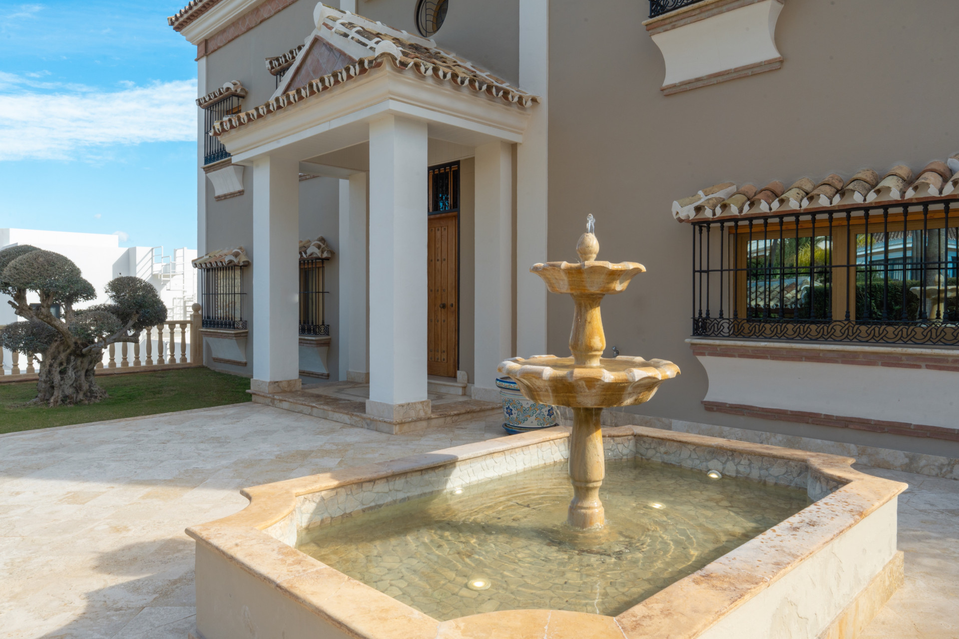 Ubicada a solo 10 minutos a pie del centro de La Cala de Mijas, esta impresionante villa de cinco dormitorios ofrece una combinación única de lujo, confort y una ubicación privilegiada. Construida originalmente en 2008, la propiedad cuenta con una elegante entrada con jardines paisajísticos y una fuente decorativa, dando la bienvenida con un amplio hall de entrada con techos altos y vistas panorámicas al mar desde el primer momento.