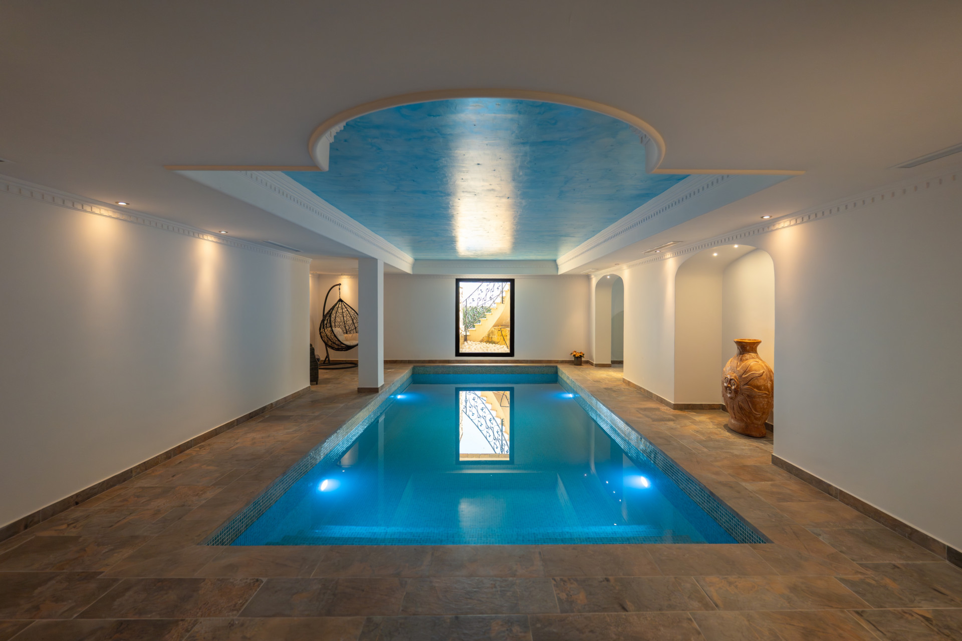 Uno de los grandes atractivos de la propiedad es su sótano excepcionalmente bien equipado, diseñado para el ocio y la funcionalidad. Aquí se encuentra una zona de entretenimiento con bar y mesa de billar, una piscina interior climatizada, gimnasio, lavandería, trasteros y un estudio privado con cocina, baño y entrada independiente.
