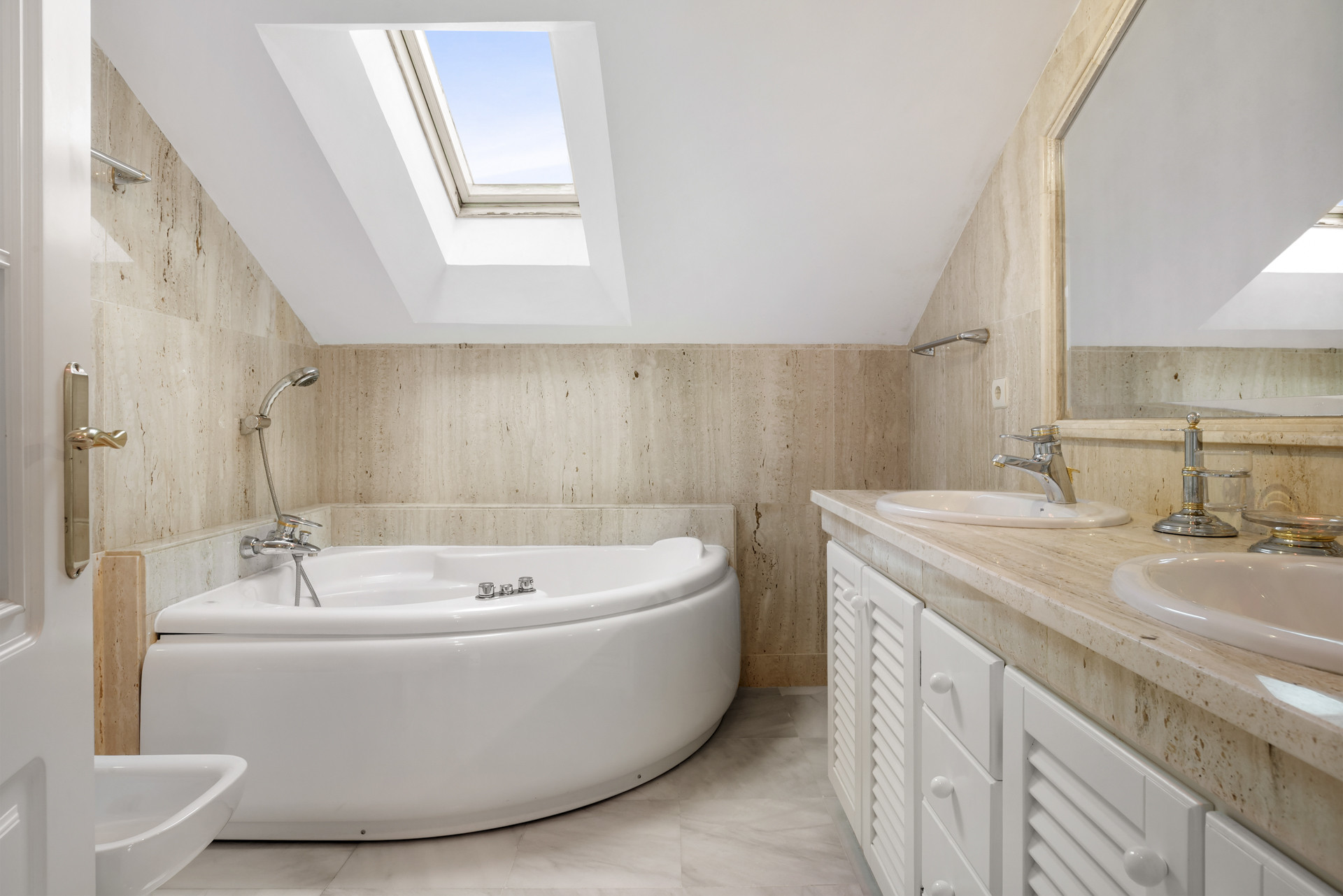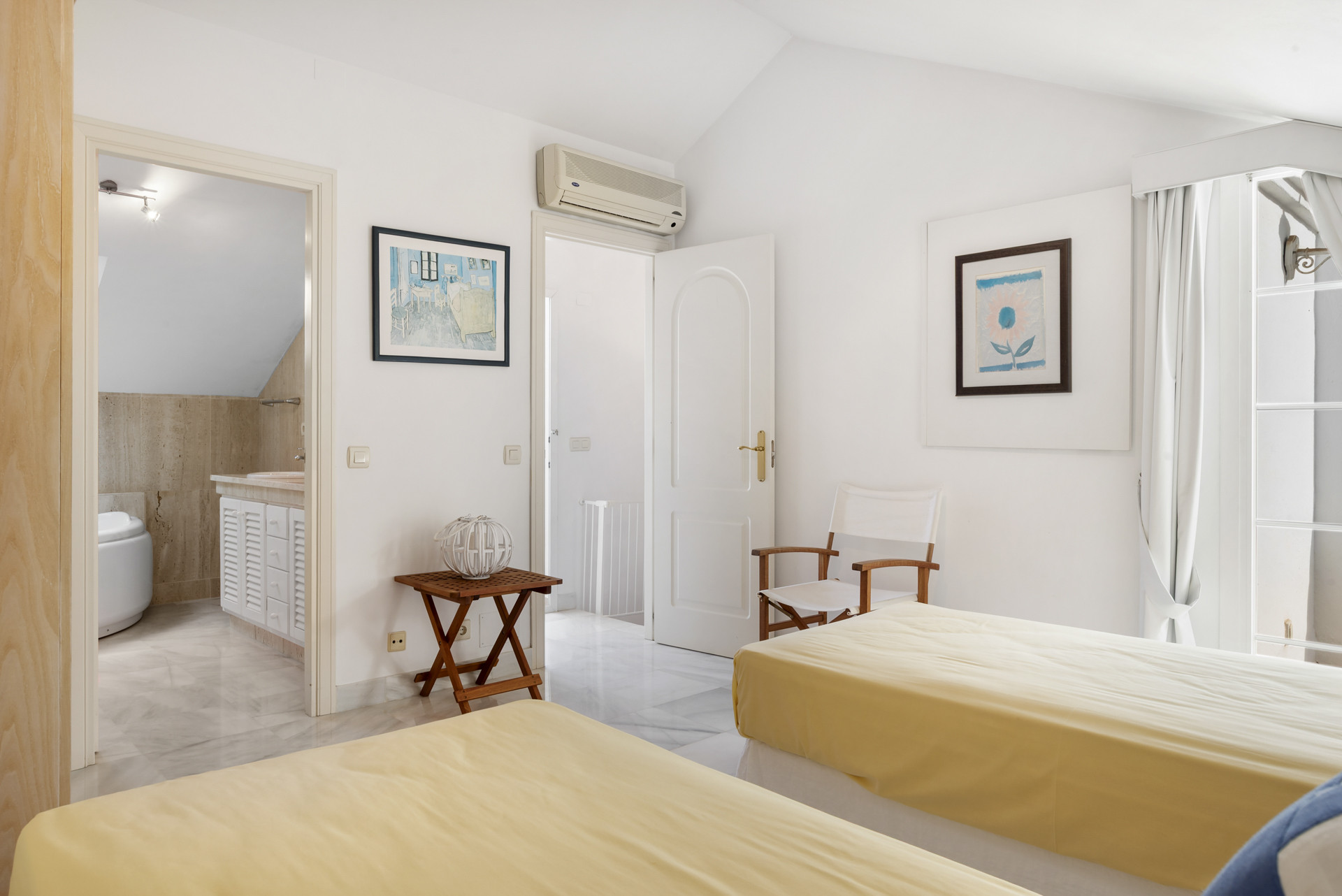 En la tercera planta encontrará este encantador y espacioso dormitorio con dos camas individuales y un espacioso baño en suite con bañera. Este dormitorio tiene acceso a la azotea, donde podrá disfrutar de las hermosas vistas de La Concha.