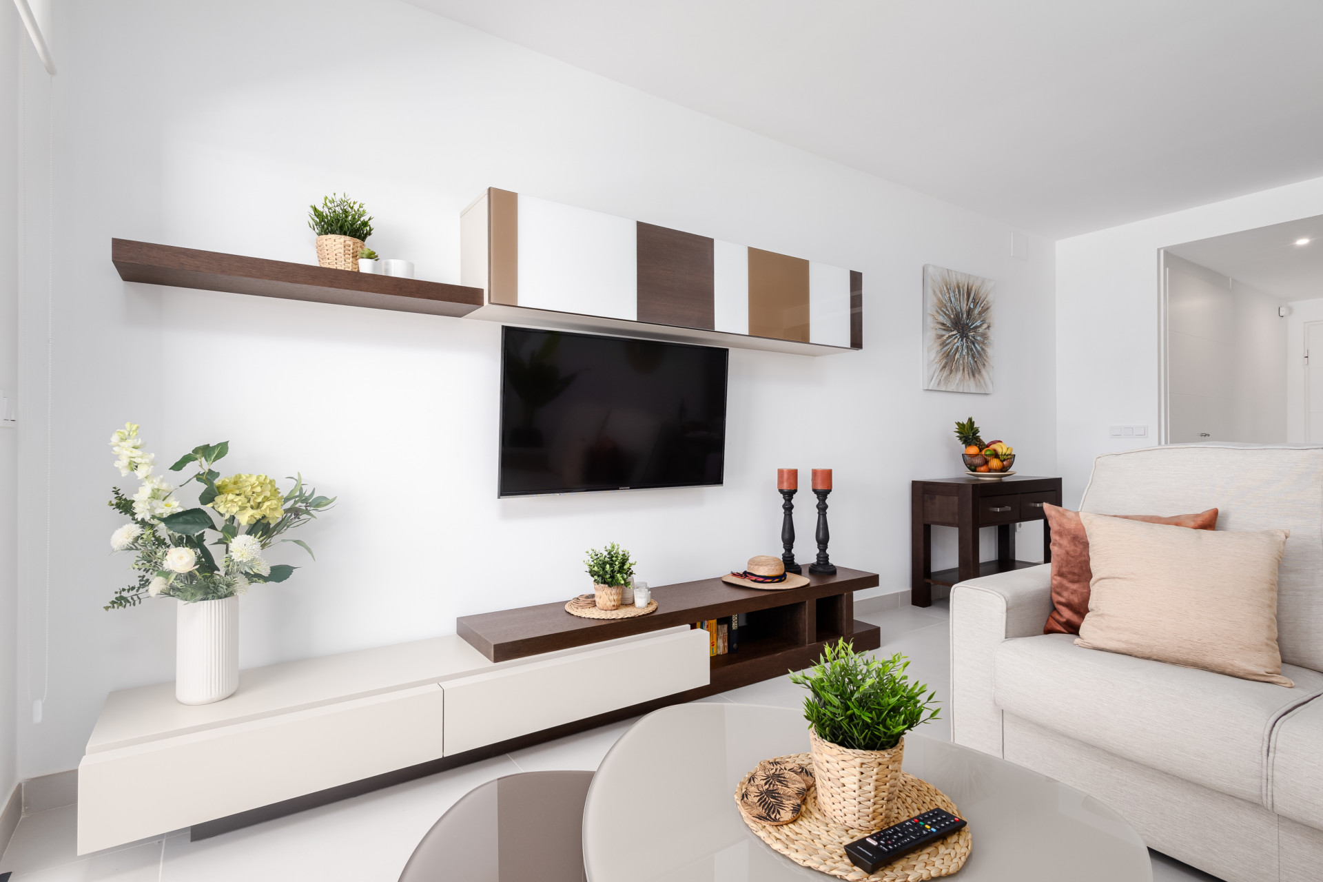 La vivienda cuenta con dos amplios dormitorios y dos baños modernos, uno de ellos en suite en el dormitorio principal. Diseñado para disfrutar del estilo de vida mediterráneo, el apartamento dispone de una elegante cocina de concepto abierto integrada en el salón-comedor, creando un espacio funcional y acogedor, ideal tanto para el día a día como para recibir invitados.