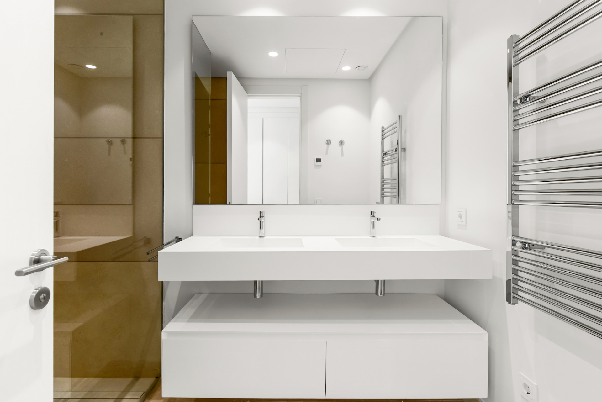 – Acabados meticulosos: climatización independiente por estancia, suelo radiante en los baños, techos altos, aseo de invitados, ventanales de gran tamaño, numerosos armarios, etc.