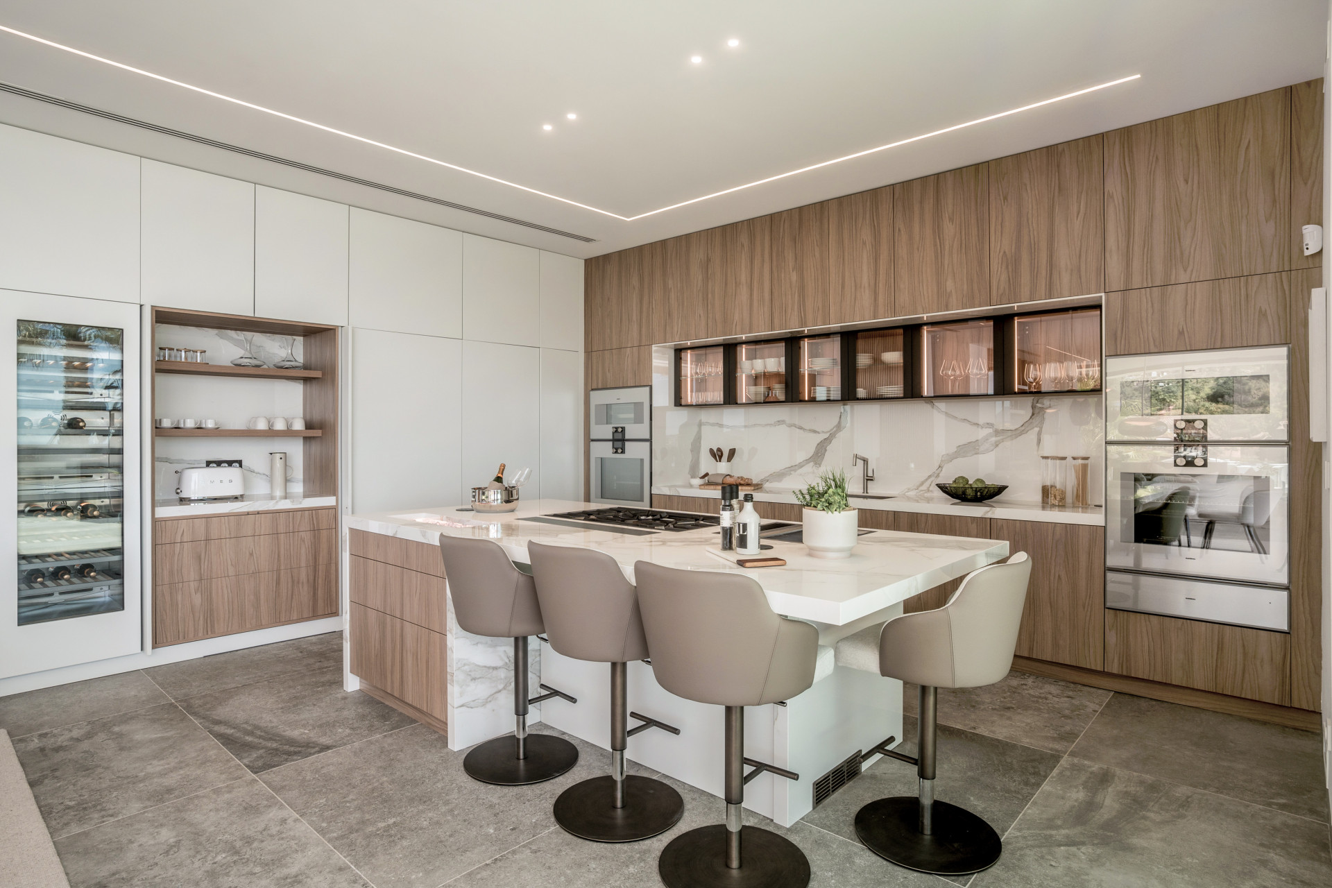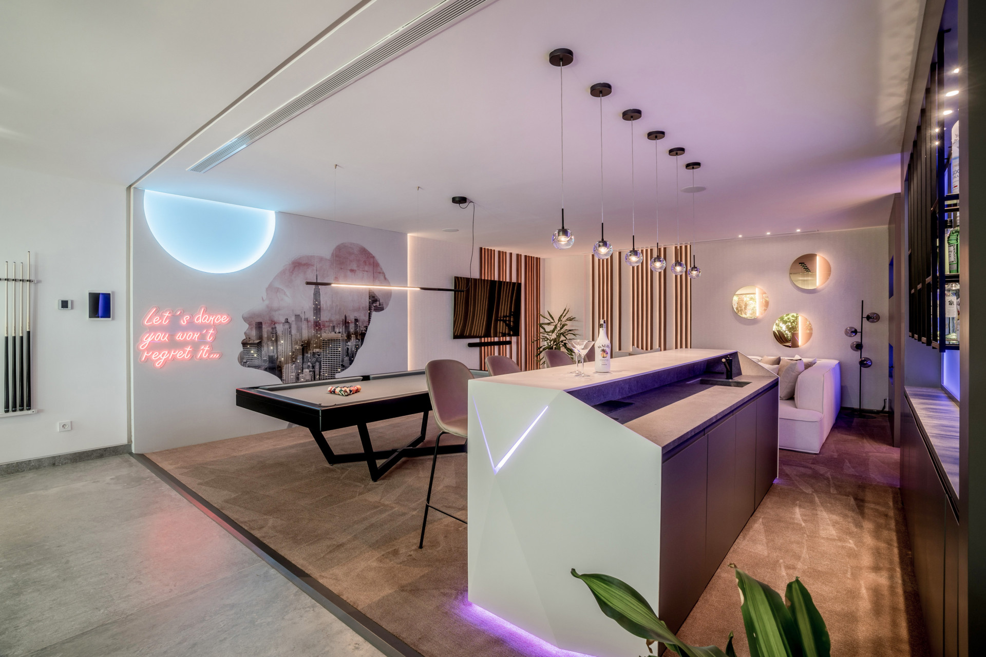 Esta villa cuenta con un spa privado con piscina cubierta climatizada, sauna, baño de vapor y una zona de masajes. Un gimnasio totalmente equipado con equipos Eleiko le permite mantenerse activo sin salir de casa, mientras que la espaciosa sala de entretenimiento ofrece el entorno ideal para noches de cine, juegos o simplemente relajarse con familiares y amigos. La cocina cuenta con electrodomésticos Gaggenau de alta calidad y elegantes armarios de Danespan, que combinan un diseño moderno con la funcionalidad diaria. Una oficina contigua ofrece un espacio tranquilo para trabajar o estudiar. Un punto destacado de la villa es el cine al aire libre junto a la piscina, un espacio excepcional para relajarse bajo las estrellas y añadir un toque de lujo a sus tardes al aire libre.