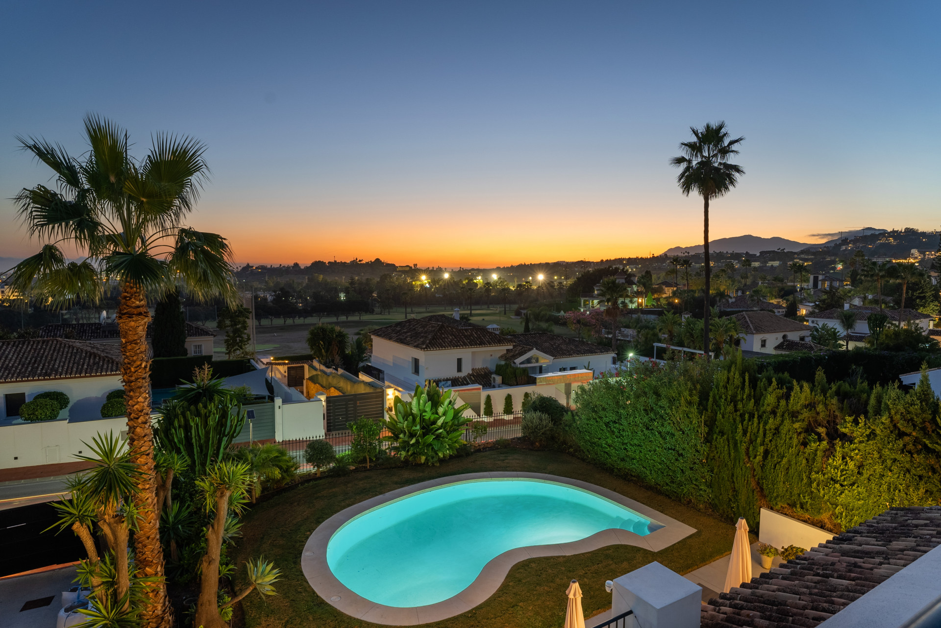 Descubra esta impresionante villa de estilo escandinavo en el corazón de Nueva Andalucía, a solo 300 metros del campo de golf Los Naranjos. El luminoso salón-comedor cuenta con techos altos, ventanas de suelo a techo, una acogedora chimenea y una elegante cocina de chef con electrodomésticos Miele. La planta principal incluye dos dormitorios dobles, un dormitorio individual y modernos baños con calefacción por suelo radiante. En la planta superior, la suite principal cuenta con vestidor, baño de lujo, terraza privada y acceso a una azotea panorámica.