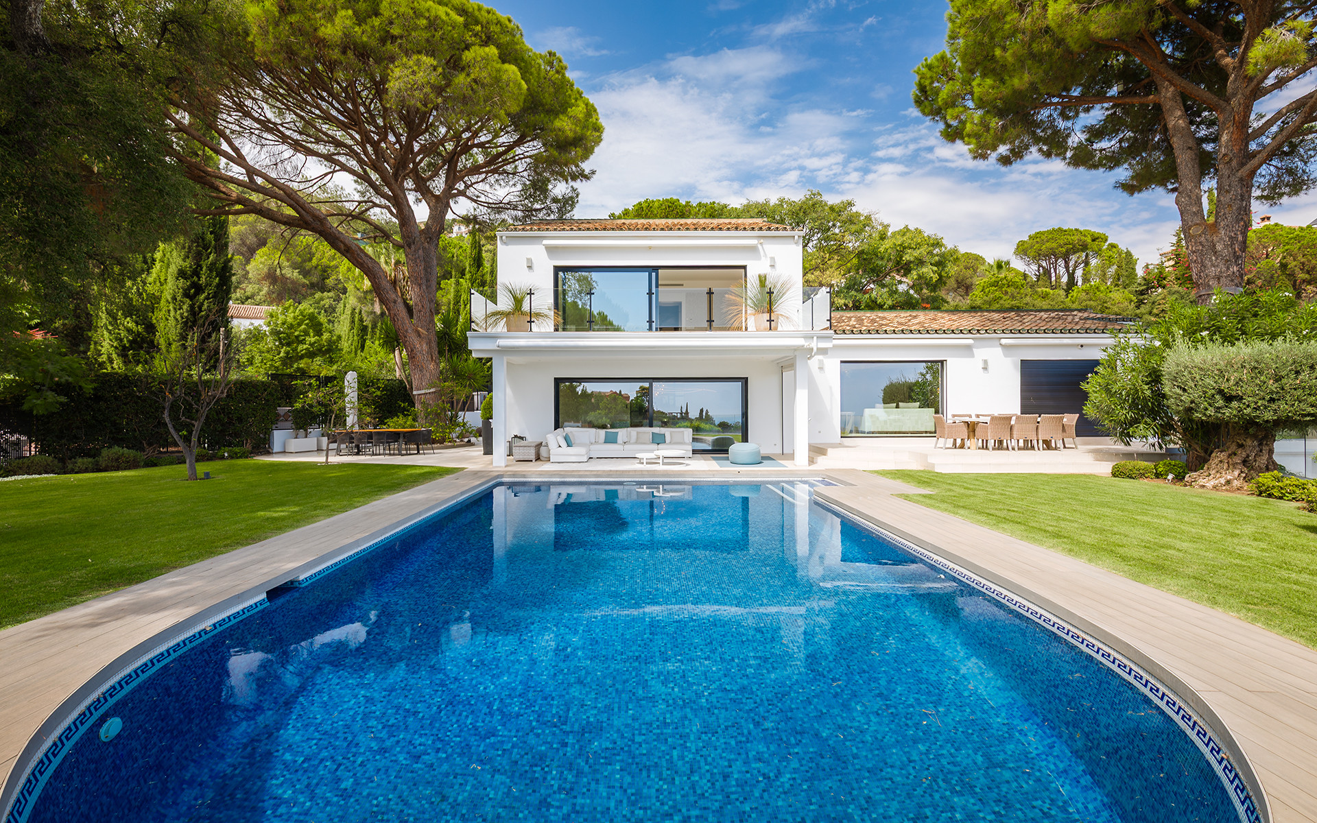 Gelegen in het prestigieuze residentiële landgoed El Madroñal in Benahavís, biedt deze elegante villa de perfecte combinatie van privacy, natuur en adembenemend panoramisch uitzicht op de bergen en de Middellandse Zeekust.