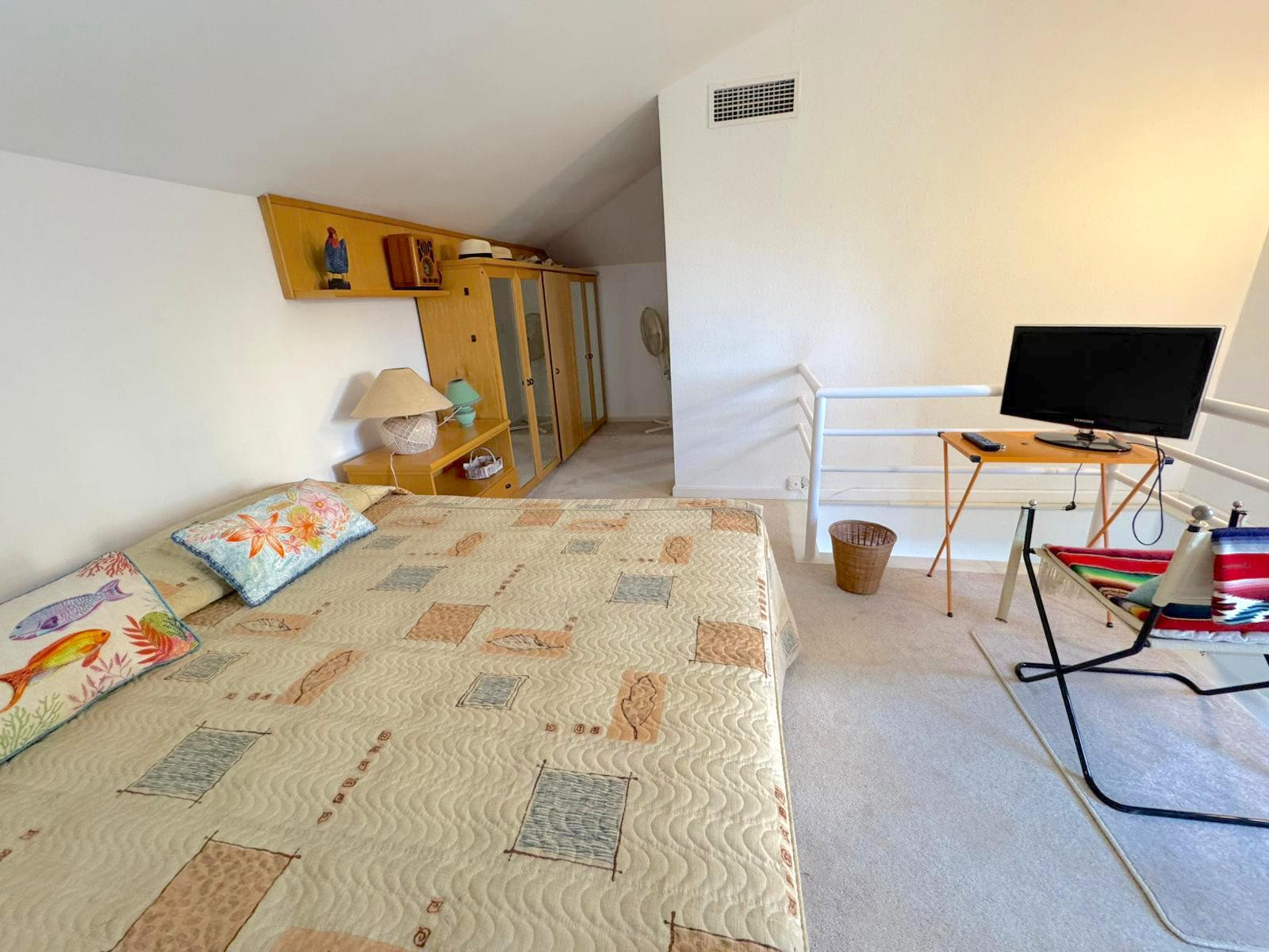 This two-bedroom, two-bathroom apartment, boasting generous proportions and an excellent layout, provides the ideal foundation for a full renovation to enhance its value and transform it into a bespoke luxury residence. One of the bedrooms is located on the upper level, featuring an open-plan feel and a charming sloped ceiling, adding character and architectural interest to the home.