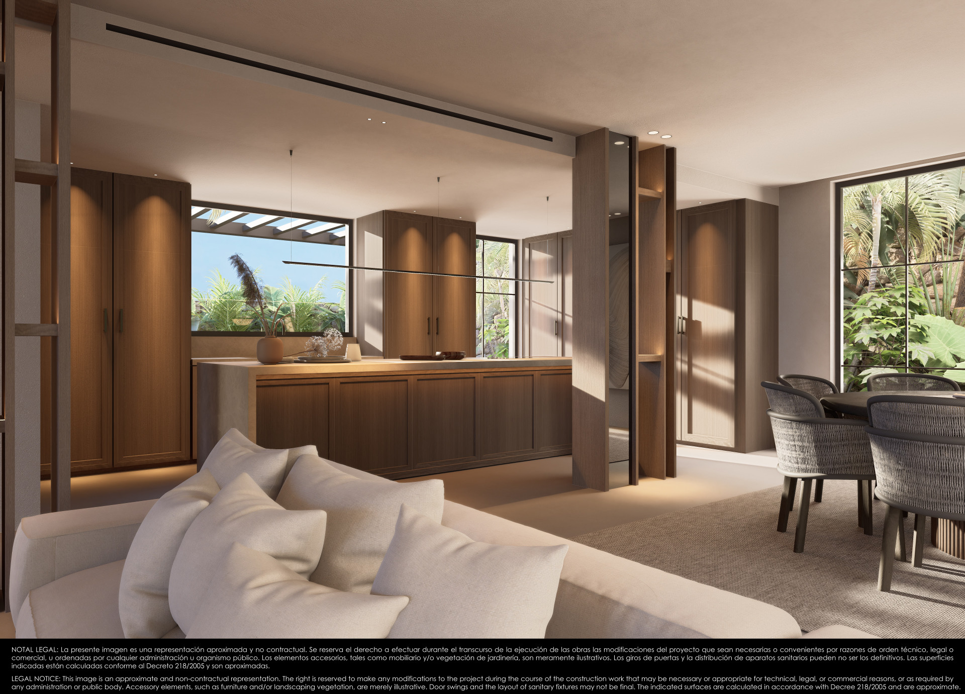 Fully renovated to the highest standards by renowned Nmobe Architects Marbella, the villa boasts 400m² of elegant interior space on a generous 1,000m² plot. The design centres around a stylish open-plan kitchen that flows effortlessly into the spacious living and dining areas—perfect for modern living and entertaining.