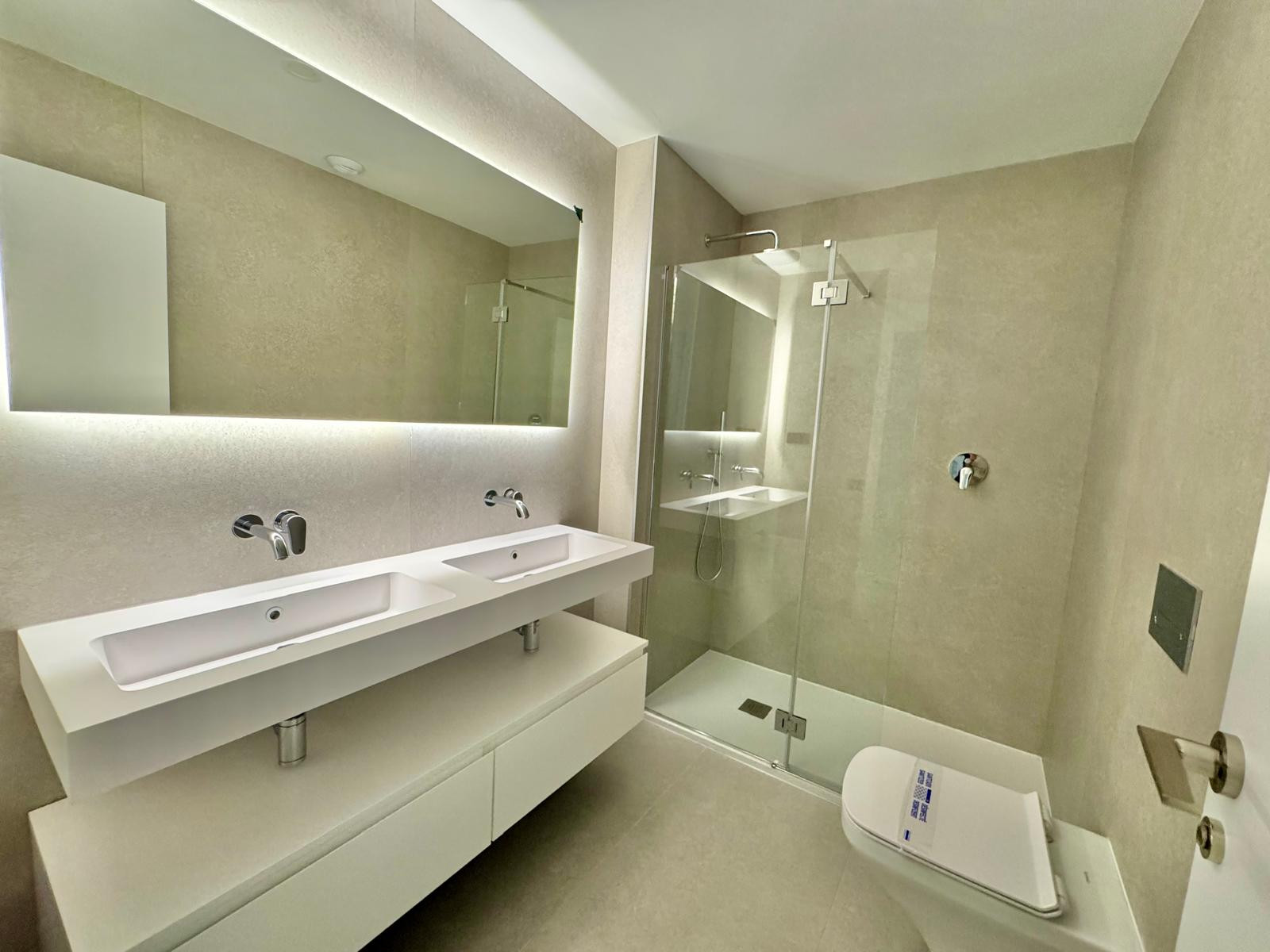 On the left side of the apartment, you will find three bedrooms and two full bathrooms, as well as a rear terrace. Every space stands out for its brightness and excellent quality finishes.