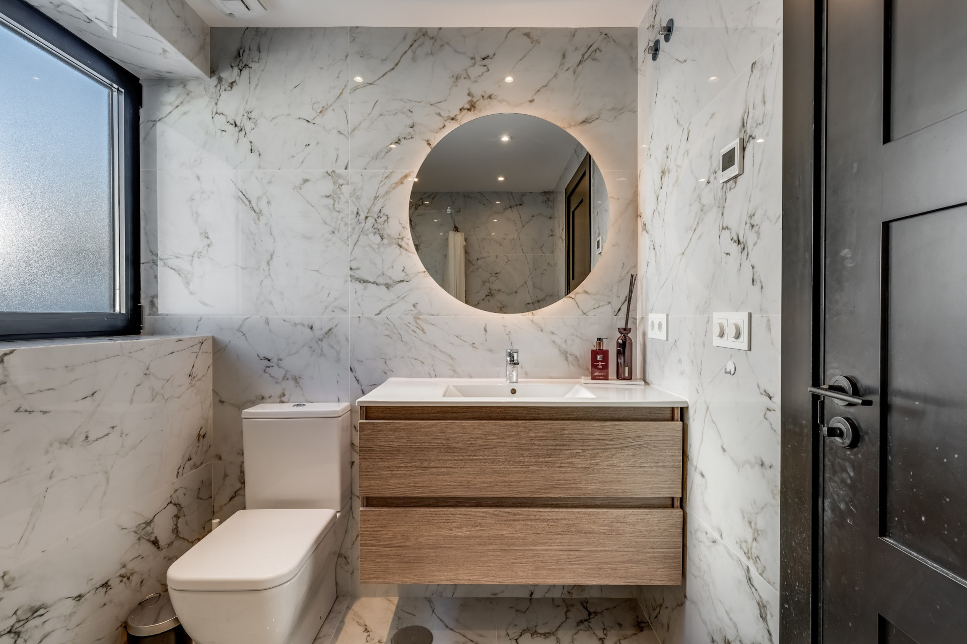 Upper Level: The master suite offers an en-suite bathroom and elegant design, ensuring a serene and private retreat. An additional en-suite guest bedroom is also located on this level, ideal for family or guests. Both bedrooms have balconies, allowing you to enjoy the views and Mediterranean climate. There is also a spacious terrace on this level.