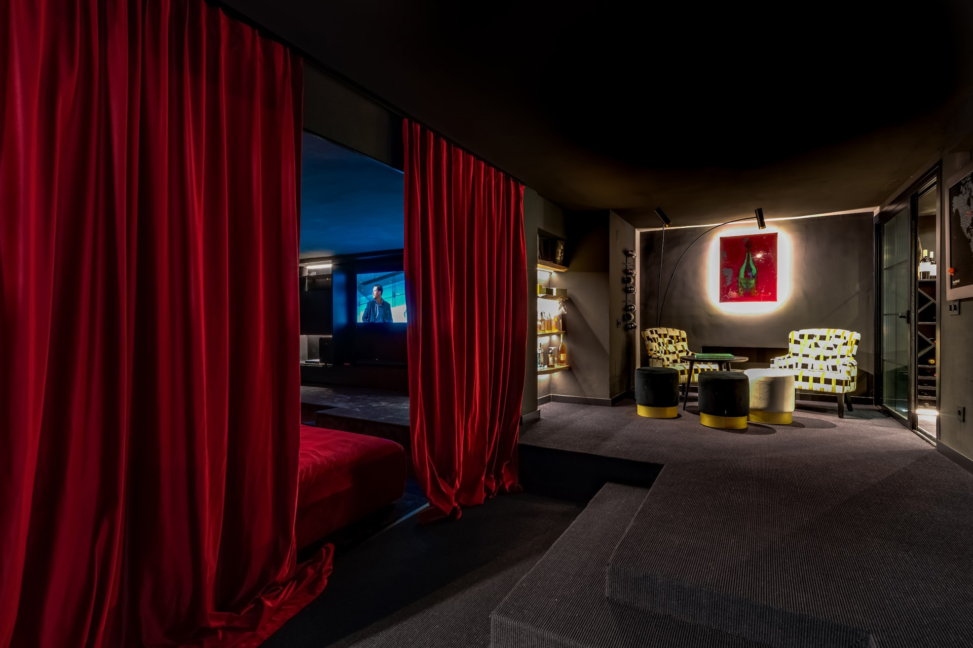 Basement: Perfectly designed for relaxation and entertainment, the basement features a games room, a stylish bar with a lounge area, a cinema room, and a wine cellar. This level also includes two guest bedrooms sharing a bathroom and generous storage space. Additionally, the basement includes a garage and a machine room.